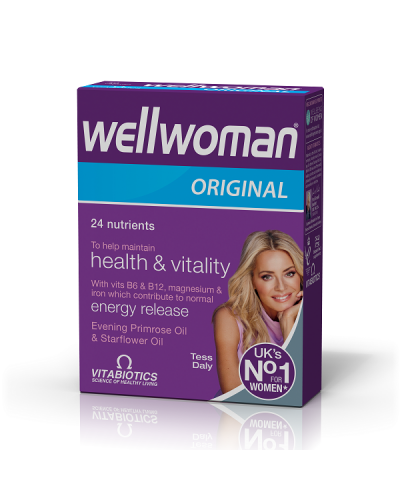 Το συμπλήρωμα διατροφής Wellwoman Original της Vitabiotics αποτελεί μια μοναδική σύνθεση φυτικών εκχυλισμάτων και 22 μικροθρεπτικών συστατικών. Το έλαιο νυχτολούλουδου και το έλαιο starflower που περιέχει είναι πλούσιες πηγές του ωμέγα-6 απαραίτητου λιπαρού οξέος GLA (γάμμα-λιν..