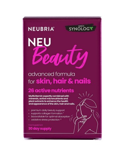 Το Neu Beauty της Neubria είναι ένα συμπλήρωμα διατροφής για την καθημερινή υποστήριξη της ομορφιάς, που προσφέρει θρεπτικά συστατικά με αποδεδειγμένα οφέλη στα μαλλιά, το δέρμα και τα νύχια. Η προηγμένη του φόρμουλα περιλαμβάνει βιταμίνες, ιχνοστοιχεία, κυστεΐνη, κολλαγόνο και το μονα..