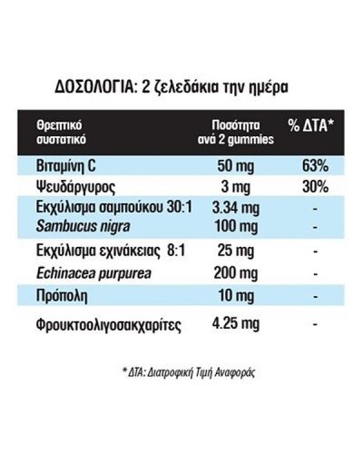 Βιταμίνη C και Ψευδάργυρο που ενισχύουν τη λειτουργία του ανοσοποιητικο..