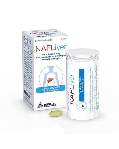 Το Nafliver είναι ένα συμπλήρωμα διατροφής για το λιπώδες ήπαρ και την υποστήριξη της φυσιολογικής λειτουργίας του ήπατος. Περιέχει χολίνη και εκχύλισμα Prunus mume τιτλοδοτημένο σε ολεανολικό και ουρσολικό οξύ.