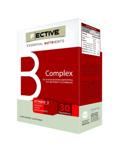 Το σύμπλεγμα των βιταμινών Β περιέχει όλες τις πολύτιμες για τον οργανισμό βιταμίνες Β ( Β1, Β2, Β3, Β5, Β6, Β12, φολικό οξύ, βιοτίνη και χολίνη). Το σύμπλεγμα των βιταμινών Β συμβάλει στη φυσιολογική λειτουργία του νευρικού συστήματος κ..