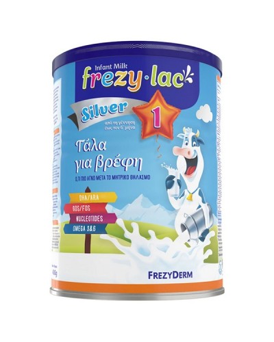 Το FREZYLAC SILVER 1 είναι αγελαδινό γάλα σε σκόνη, κατάλληλο για τη διατροφή του τελειόμηνου βρέφους από τη γέννηση έως τον 6° μήνα.