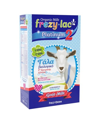 Το FREZYLAC PLATINUM PLUS 2 είναι βιολογικό κατσικίσιο γάλα σε σκόνη, κατάλληλο για βρέφη από τον 6° μήνα στο πλαίσιο μιας μεικτής διατροφής.
