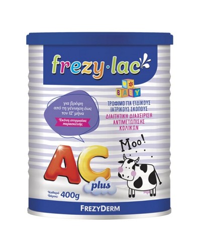 Το FREZYLAC AC PLUS είναι ένα διαιτητικό τρόφιμο σε σκόνη κατάλληλο για την διαιτητική διαχείριση αντιμετώπισης των κολικών του βρέφους. Με Μερικώς Υδρολυμένη Πρωτεΐνη, β-παλμιτικό οξύ που συμβάλει στη μαλακότερη υφή κοπράνων καθώς κα..