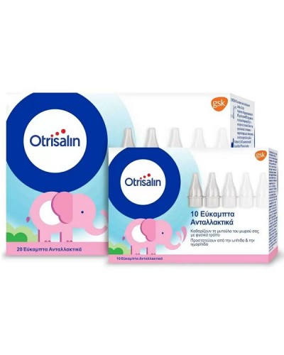 Η συσκευασία ανταλλακτικών Otrisalin περιέχει 20 εύκαμπτα ανταλλακτικά ακροφύσια μιας χρήσης με απορροφητικό φίλτρο που χρησιμοποιούνται με τη Συσκευή Ρινικής Απόφραξης Otrisalin (η συσκευή ρινικής απόφραξης πωλείται ξεχωριστά)