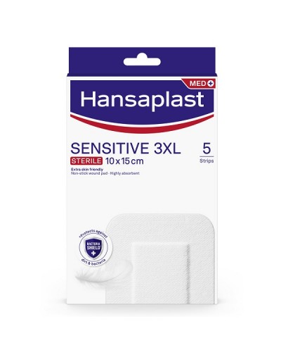 Τα επιθέματα Hansaplast Sensitive 3XL είναι αποστειρωμένα επιθέματα πληγών για την προστασία των μεγαλύτερων πληγών ή μετεγχειρητικών τραυμάτων.
