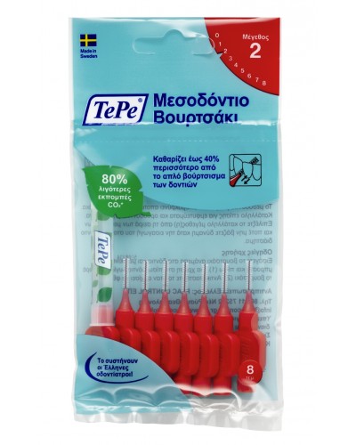TePe Μεσοδόντια Βουρτσάκια Κόκκινο 0.5mm, Μέγεθος ISO 2  Τα μεσοδόντια βουρτσάκια της TePe, είναι σχεδιασμένα για να καθαρίζουν τα διαστήματα ανάμεσα στα δόντια, όπου μια κανονική οδοντόβουρτσα δεν μπορεί να φτάσει. Χρησιμοποιείτε τα μεσ..