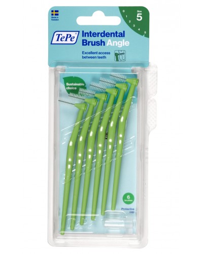 Τα μεσοδόντια βουρτσάκια TePe Angle έχουν σχεδιαστεί για να καθαρίζουν τα κενά ανάμεσα στα δόντια, όπου μια κανονική οδοντόβουρτσα δεν μπορεί να φτάσει. Τα μεσοδόντια βουρτσάκια TePe Angle έχουν μακριά λαβή και κεκλιμένη κεφαλή για ευκολότερη πρόσβαση ανάμεσα στα πίσω δ..